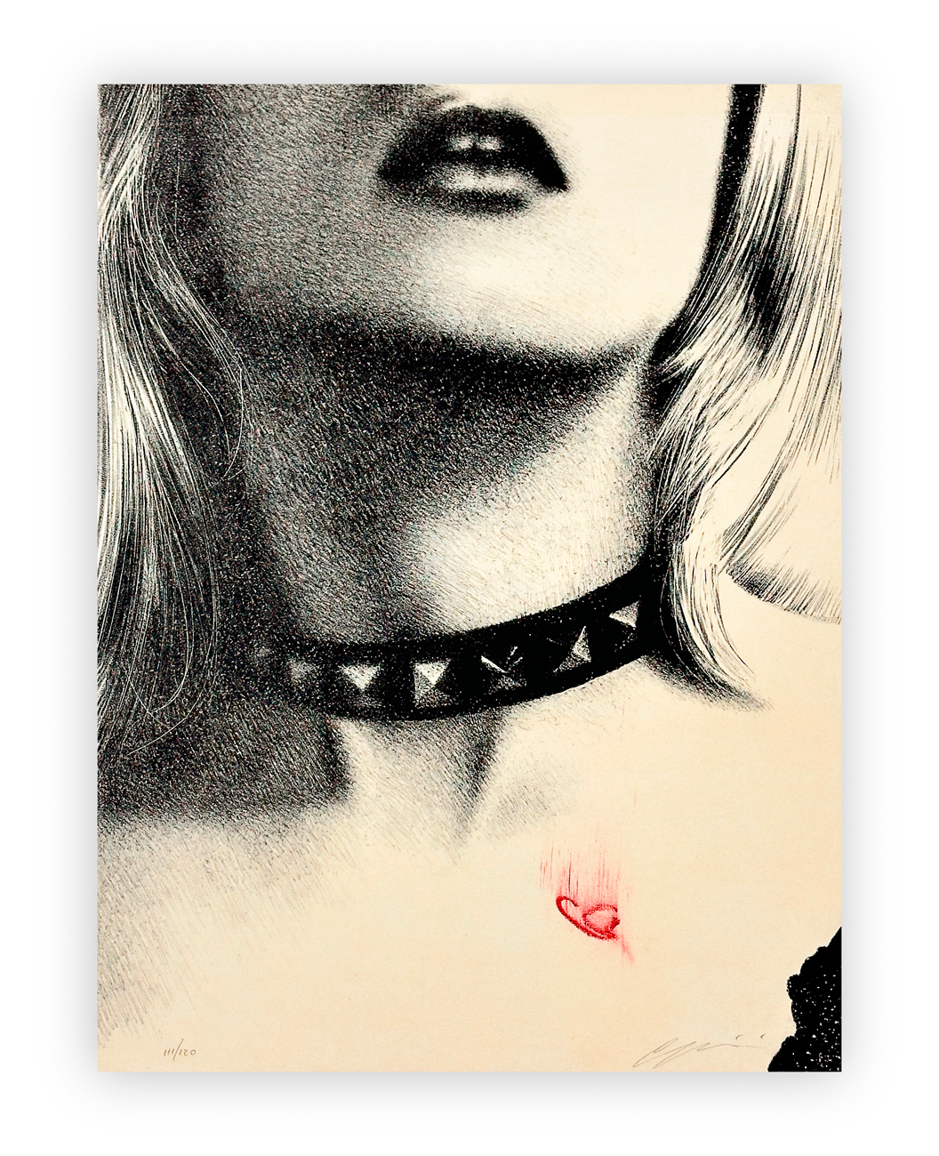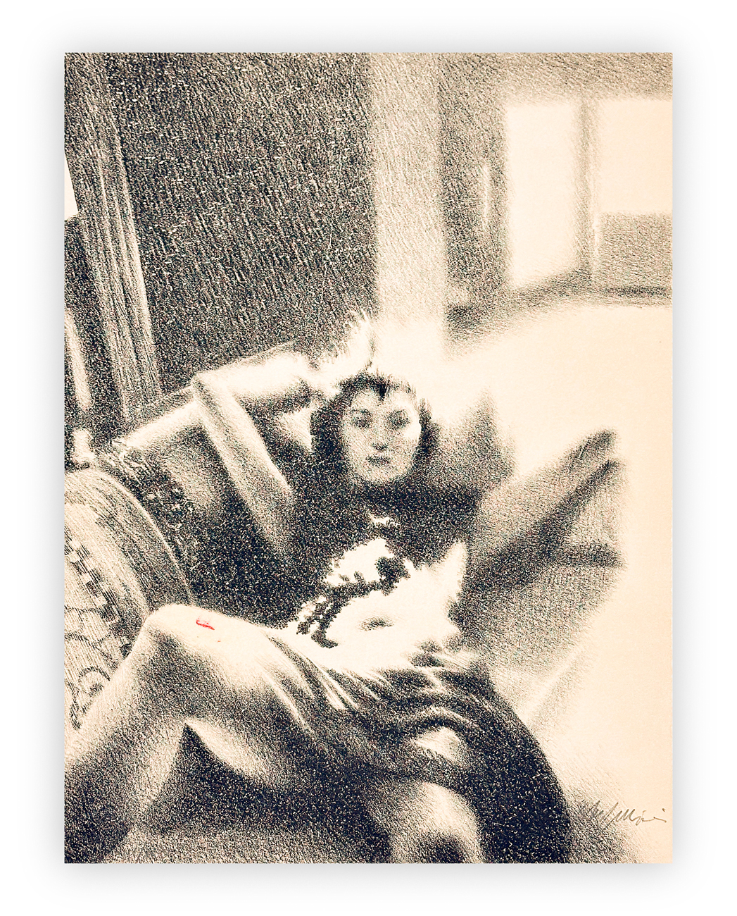 Cartella contenente testo di Giorgio Soavi e 10 litografie a 3 colori di Omar Galliani, ciascuna recante firma e numerazione (Esemplari 86/120) a matita al fronte