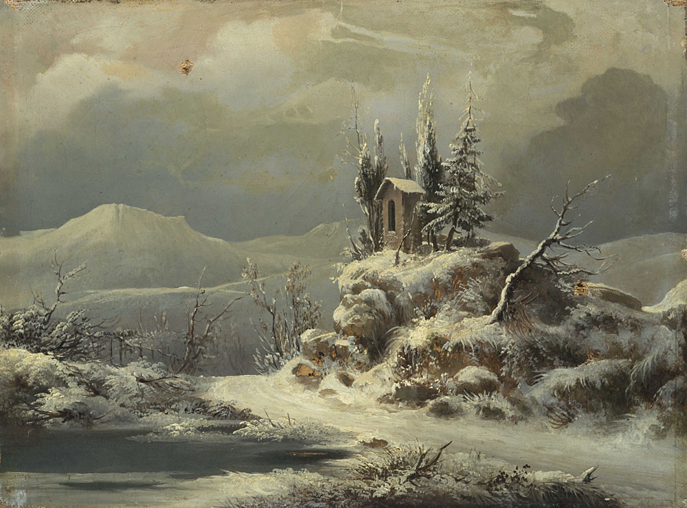 Maestro della fine del XIX secolo "Cappella votiva" olio su tela (cm 35.5x47)...