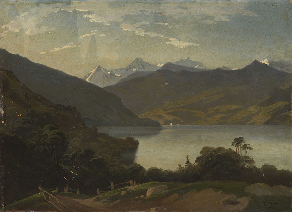 Giuseppe Camino (Torino 1818 - Caluso 1890) - "Paesaggio lacustre" 1875 olio...