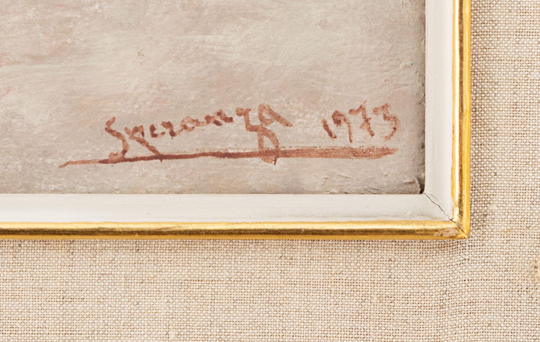 - Francesco Speranza nacque a Bitonto il 19 ottobre 1902 e si affermò come uno dei pittori italiani più sensibili e raffinati del Novecento, noto per la sua adesione alla pittura figurativa e per i paesaggi della sua terra natale. Fin da giovane mostrò una spiccata vocazione artistica, che lo portò a frequentare l’Accademia delle Belle Arti di Napoli sotto la guida di Vincenzo Migliaro, affinando la tecnica del disegno e della pittura. Successivamente si trasferì a Milano, dove completò la sua formazione all’Accademia di Brera, diplomandosi con il massimo dei voti e consolidando il suo legame tra tradizione e modernità.La sua carriera espositiva si sviluppò a partire dal 1926, con la partecipazione alla mostra della Società per le Belle Arti alla Permanente di Milano, e proseguì con regolarità nelle principali rassegne italiane, tra cui le Biennali di Venezia e le Quadriennali di Roma. La sua pittura si caratterizzò per la capacità di catturare la luce e le atmosfere dei luoghi, prediligendo paesaggi urbani e rurali, marine e scorci di Bitonto, dove la luminosità meridionale si combinava a una sensibilità figurativa meditativa.Accanto ai paesaggi, Speranza realizzò ritratti dei suoi familiari e di amici, dimostrando capacità di unire precisione tecnica e introspezione psicologica. Le sue opere, spesso eseguite con tecniche come la tempera elaborata alla maniera antica, si distinguono per le velature delicate e la resa luminosa dei soggetti, conferendo a ogni scena un lirismo contemplativo e una forte suggestione poetica. Dipinti come Paesaggio italico testimoniano il suo legame con la città natale e la capacità di trasformare scorci quotidiani in visioni poetiche e meditate.Parallelamente alla sua attività pittorica, Speranza insegnò disegno alla Scuola Media Tadino di Milano, mantenendo sempre vivo il filo con la sua terra d’origine, dove trascorreva le estati e traeva ispirazione per i suoi paesaggi e scorci urbani. Francesco Speranza morì il 2 agosto 1984 a Santo Spirito, nel quartiere di BariFrancesco Speranza nacque a Bitonto il 19 ottobre 1902 e si affermò come uno dei pittori italiani più sensibili e raffinati del Novecento, noto per la sua adesione alla pittura figurativa e per i paesaggi della sua terra natale. Fin da giovane mostrò una spiccata vocazione artistica, che lo portò a frequentare l’Accademia delle Belle Arti di Napoli sotto la guida di Vincenzo Migliaro, affinando la tecnica del disegno e della pittura. Successivamente si trasferì a Milano, dove completò la sua formazione all’Accademia di Brera, diplomandosi con il massimo dei voti e consolidando il suo legame tra tradizione e modernità.La sua carriera espositiva si sviluppò a partire dal 1926, con la partecipazione alla mostra della Società per le Belle Arti alla Permanente di Milano, e proseguì con regolarità nelle principali rassegne italiane, tra cui le Biennali di Venezia e le Quadriennali di Roma. La sua pittura si caratterizzò per la capacità di catturare la luce e le atmosfere dei luoghi, prediligendo paesaggi urbani e rurali, marine e scorci di Bitonto, dove la luminosità meridionale si combinava a una sensibilità figurativa meditativa.Accanto ai paesaggi, Speranza realizzò ritratti dei suoi familiari e di amici, dimostrando capacità di unire precisione tecnica e introspezione psicologica. Le sue opere, spesso eseguite con tecniche come la tempera elaborata alla maniera antica, si distinguono per le velature delicate e la resa luminosa dei soggetti, conferendo a ogni scena un lirismo contemplativo e una forte suggestione poetica. Dipinti come Paesaggio italico testimoniano il suo legame con la città natale e la capacità di trasformare scorci quotidiani in visioni poetiche e meditate.Parallelamente alla sua attività pittorica, Speranza insegnò disegno alla Scuola Media Tadino di Milano, mantenendo sempre vivo il filo con la sua terra d’origine, dove trascorreva le estati e traeva ispirazione per i suoi paesaggi e scorci urbani. Francesco Speranza morì il 2 agosto 1984 a Santo Spirito, nel quartiere di Bari.