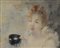 Scuola lombarda "Donna con la maschera nera" acquerello (cm 42x52) In cornice
