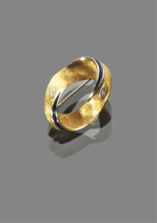 SPILLA Spilla in oro giallo con inserti di smalto e due piccoli diamanti...