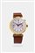 Cassa in oro con fondello a cerniera, anse basculanti. Quadrante bianco porcellana con numeri Breguet serigrafati, indicazione dei secondi continui al 9 e dei 30 minuti al 3.