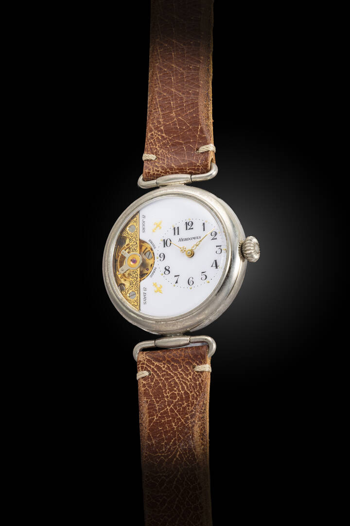 Cassa in argento con fondello a cerniera. Quadrante bianco con numeri arabi serigrafati e ad