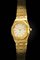 Cassa monoblocco di forma in oro. Quadrante panna con indici geometrici applicati e datario al