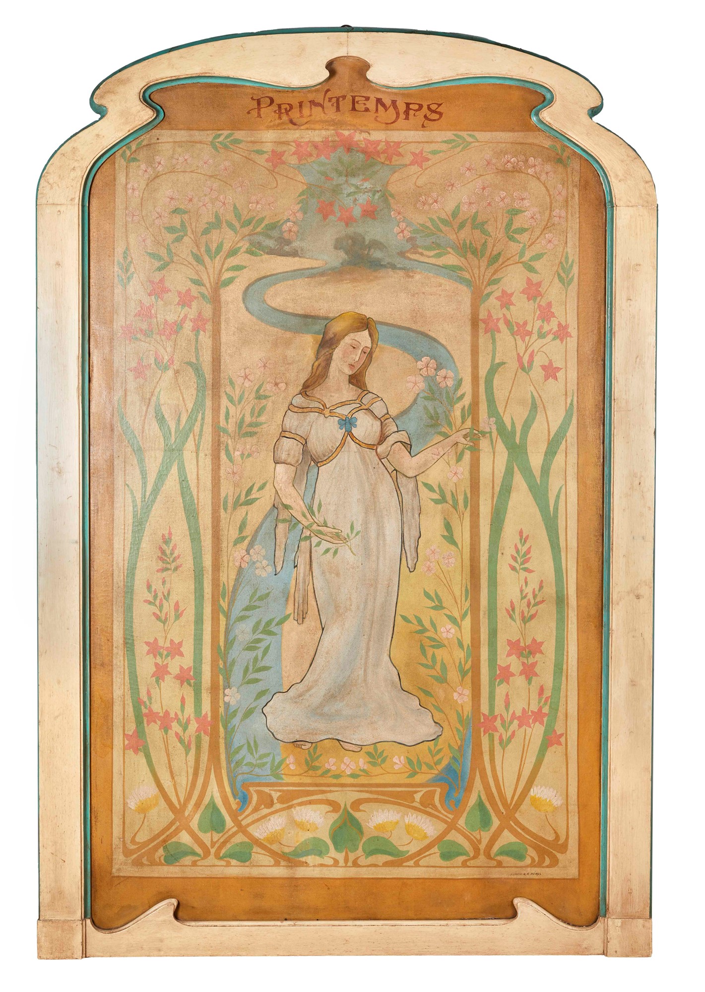 J. LOUIS & R. HEMIL. "Primavera". Inizi del XX secolo, Francia. Olio su tela. Cm 172x102.