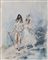 Vittorio Matteo Corcos (Livorno 1859 - Firenze 1933) - "Scena galante" acquerello su cartone (cm 60x48) Firmato in basso a sinistra In cornice