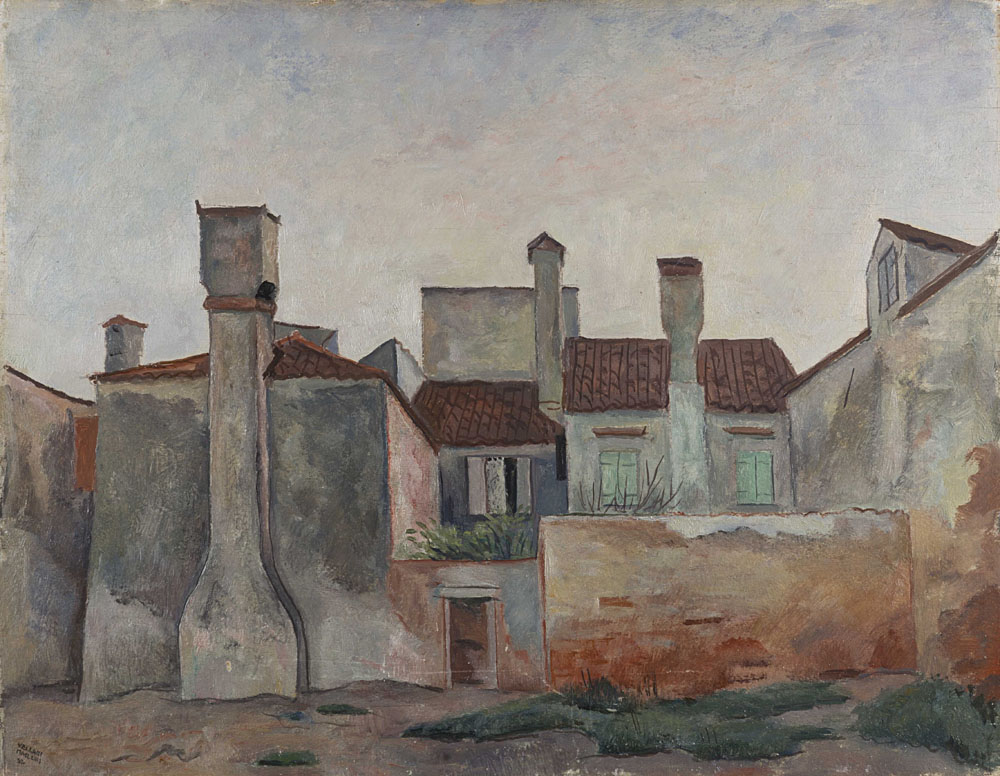 Mario Vellani Marchi (Modena 1895 - Milano 1979) - "Vecchi camini a Burano" olio su compensato (cm 40x52) Firma e data 1932 postume in basso a sinistra Al retro: firmato, titolato e datato 1930; cartiglio e timbri al retro Provenienza: Galleria d'Arte Ponte Rosso, Milano. Cartiglio e timbri al retro In cornici