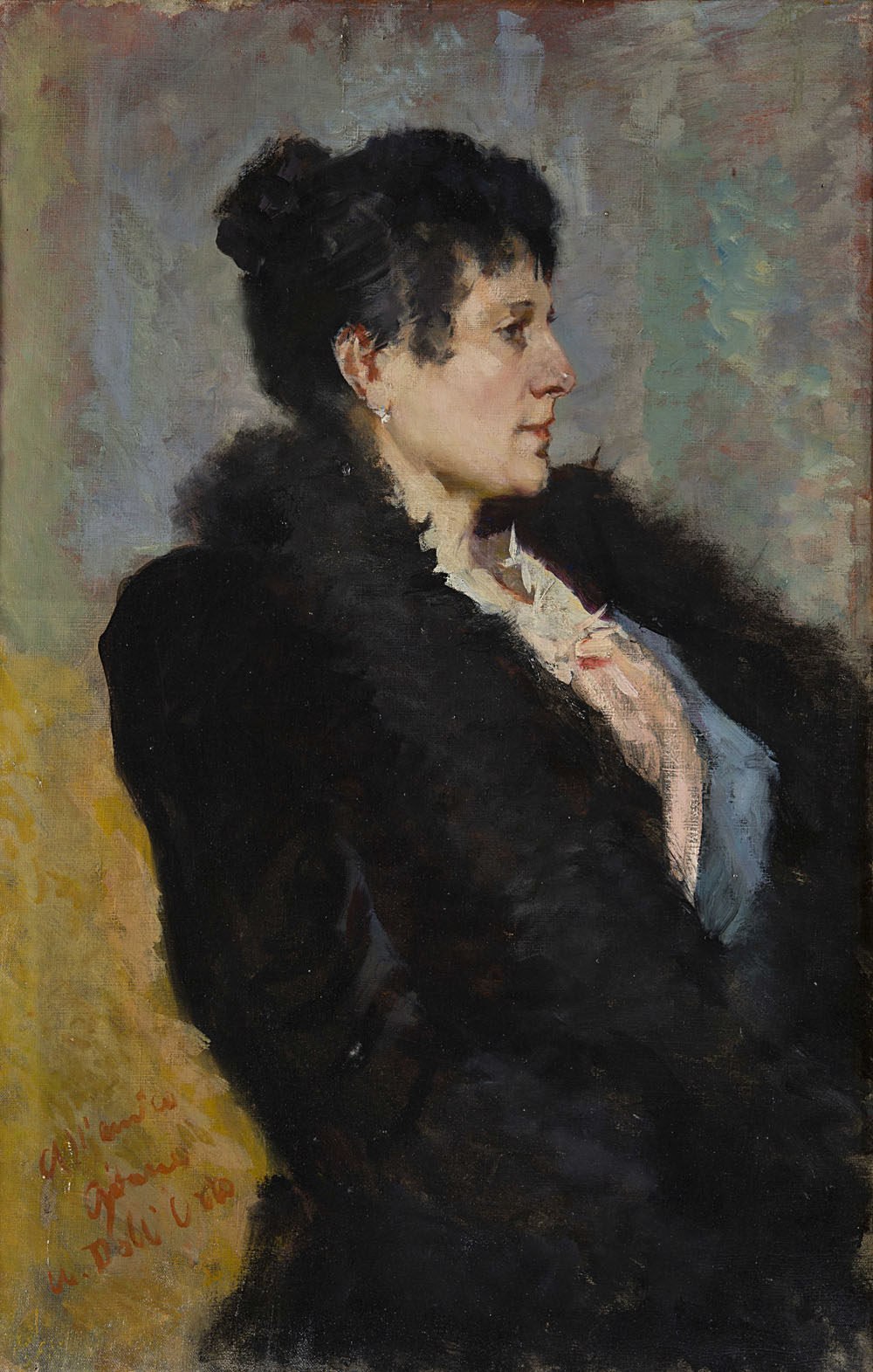 Umberto Dell'Orto (Milano 1848 - 1895) - "Ritratto di signora con cappotto...