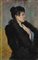 Umberto Dell'Orto (Milano 1848 - 1895) - "Ritratto di signora con cappotto nero" olio su tela (cm 70x45) Firmato e dedicato in basso a sinistra In cornice