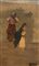 Giovan Battista Quadrone (Mondovì 1844 - Torino 1898) - Studio per il quadro "Il merciaiuolo ambulante in Sardegna" olio su tavoletta (cm 21.5x13.8) Timbro dell'Esposizione Postuma di G.B.Quadrone, Torino 1899 in basso a sinistra e etichetta con il n.118 in basso a destra Al retro: titolato ed iscritto "Società promotrice delle Belle Arti, Mostra rievocativa di G.B.Quadrone" In cornice