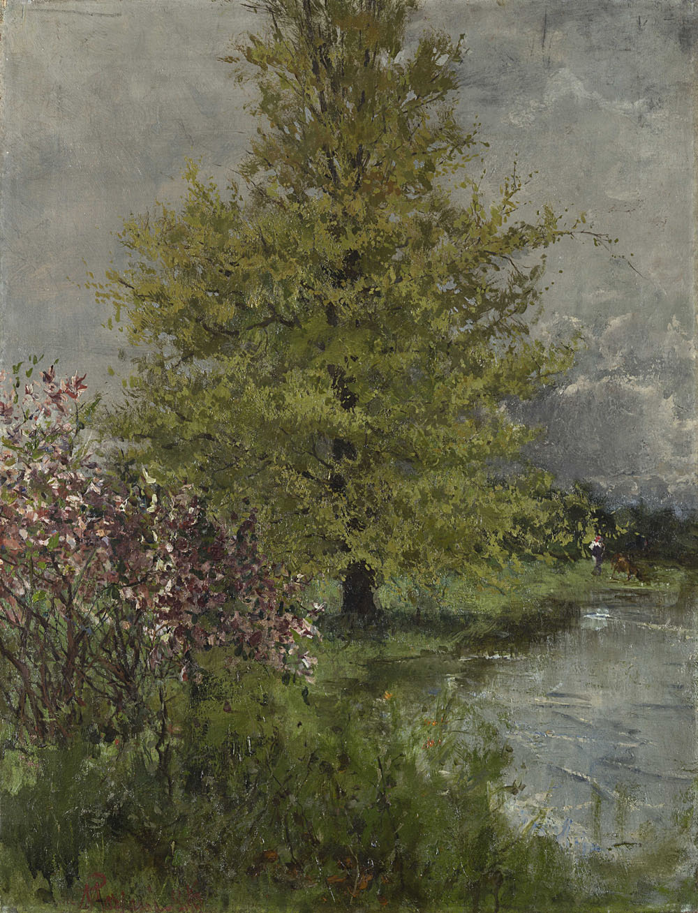 Pompeo Mariani (Monza 1857 - Bordighera 1927) - "Passeggiata nel verde" olio...
