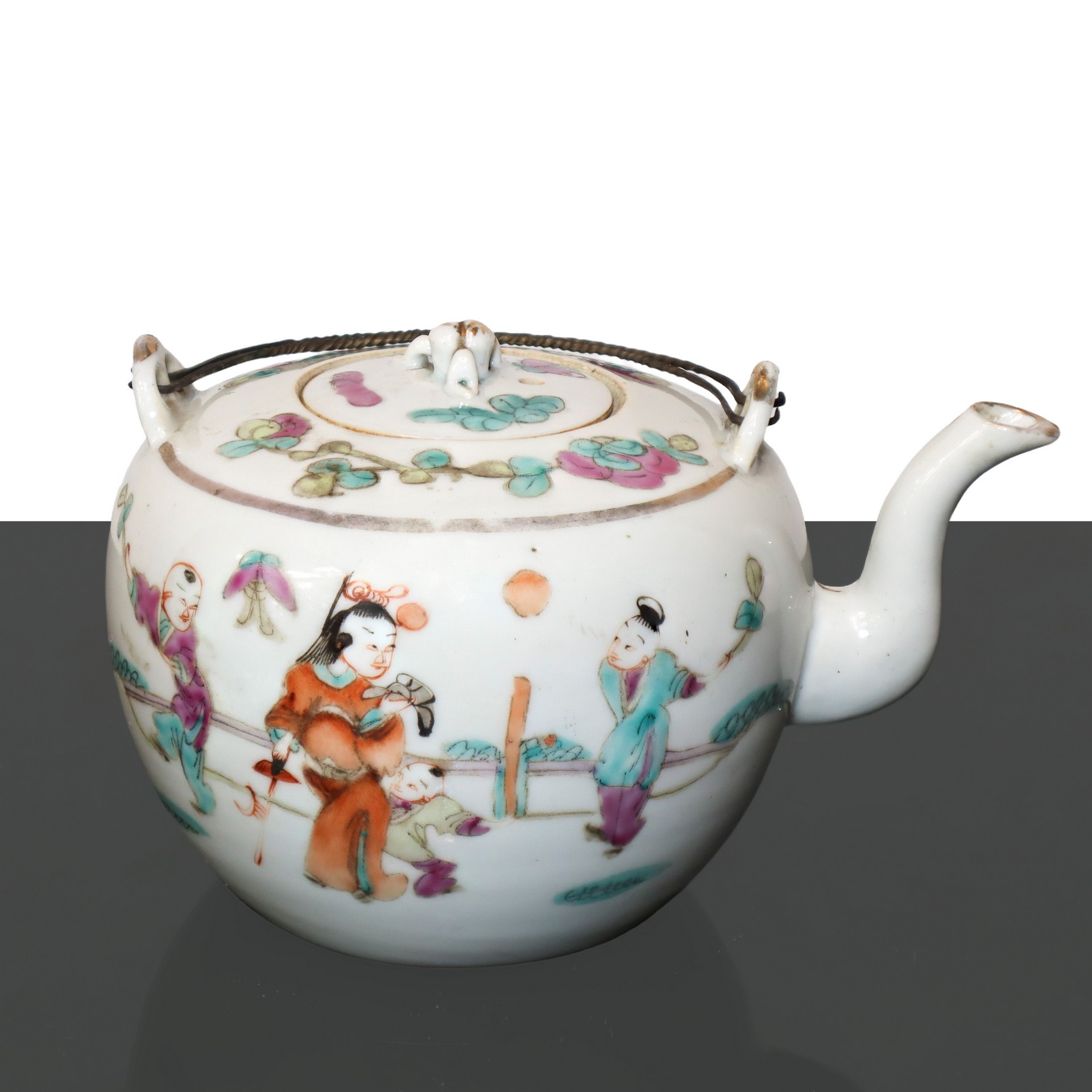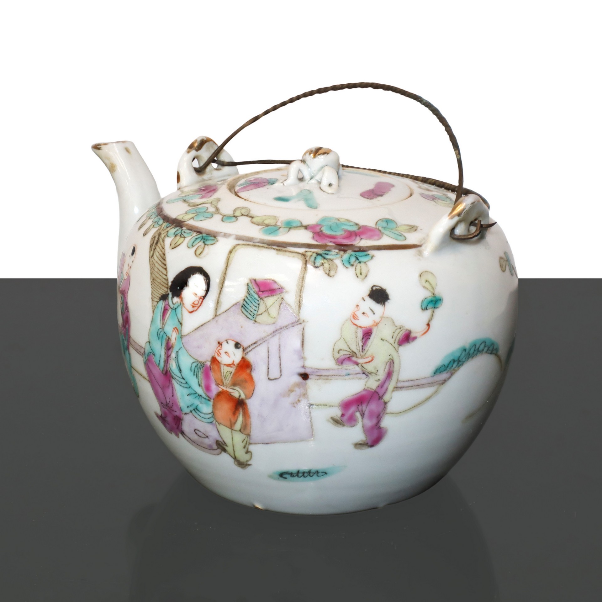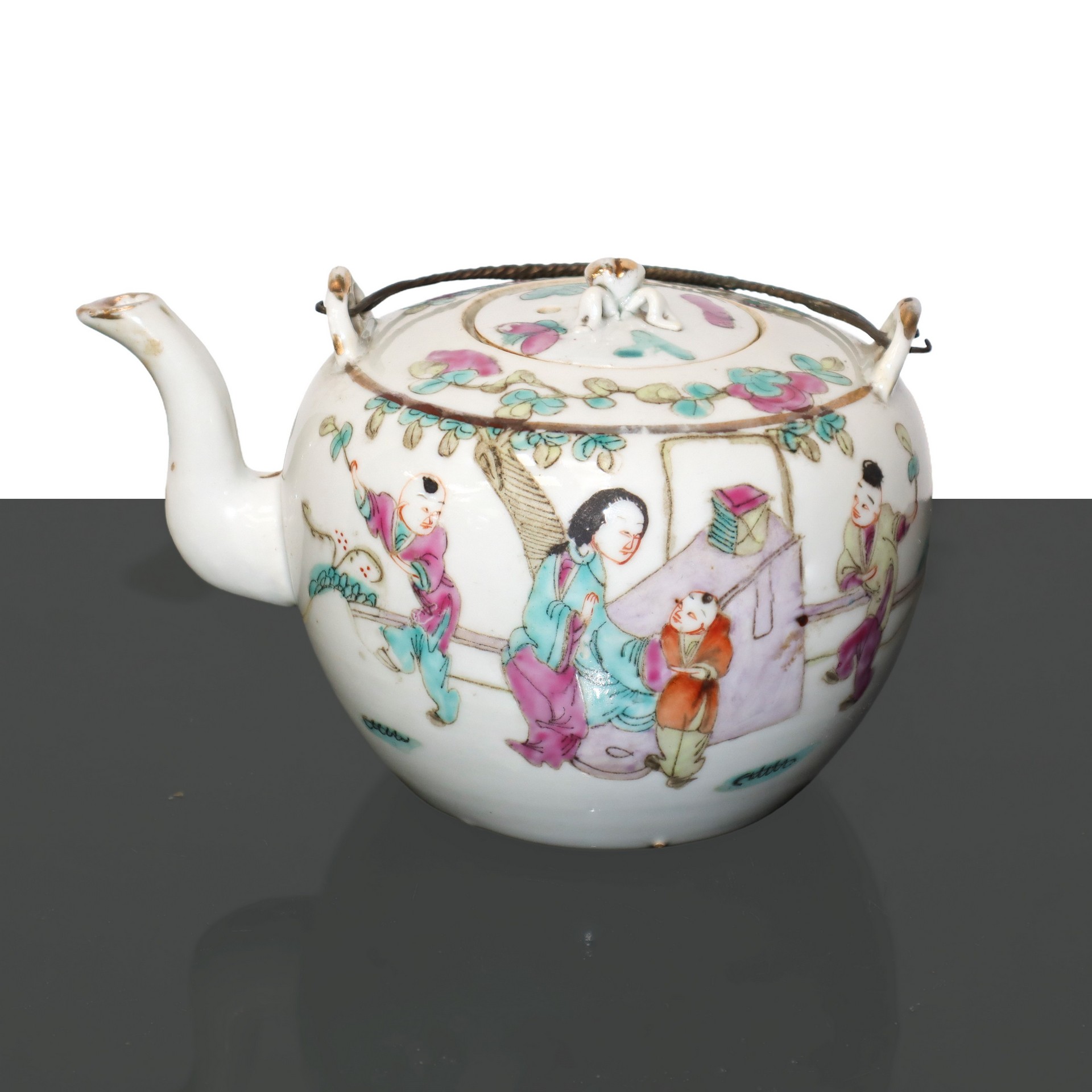 Lot 195 | Teiera cinese in porcellana con decorazioni floreali e di personaggi.