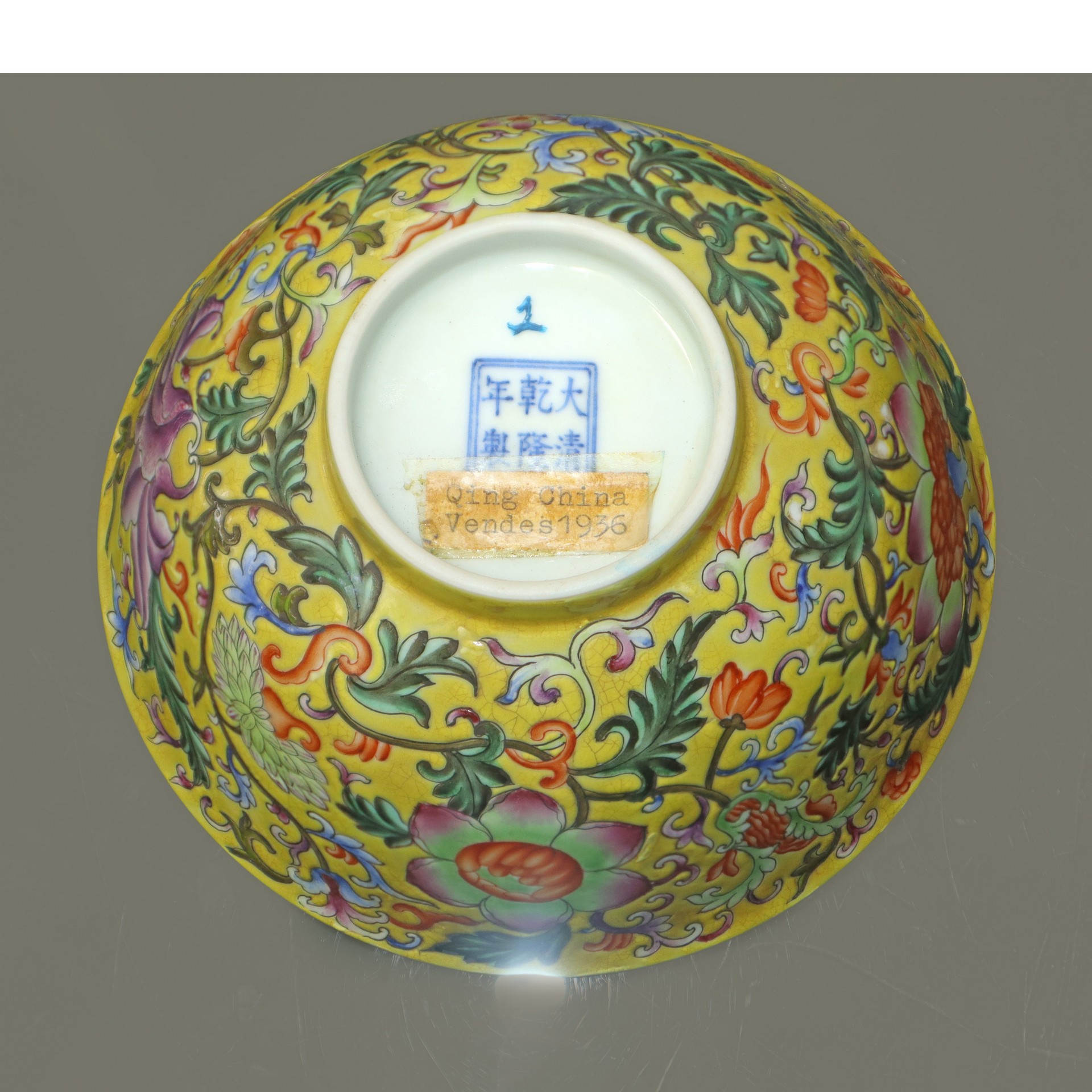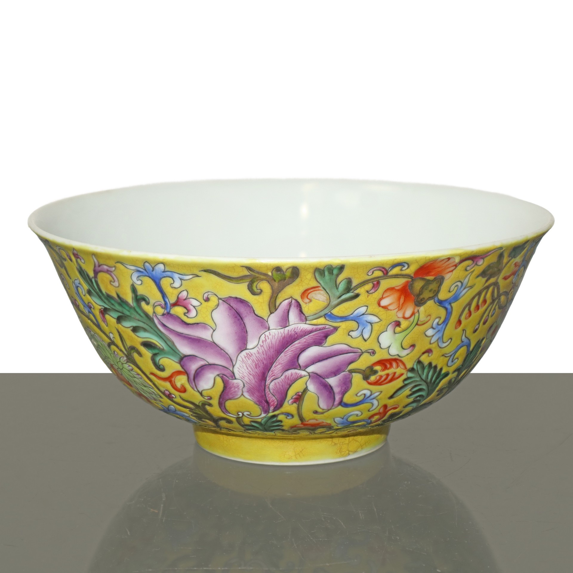 Ciotola in porcellana cinese policroma con decorazione floreale in stile famiglia rosa, Qing Dynasty h 7cm diam. 15cm Iscrizione "Qing Qianlong Nian Zhi" alla base.