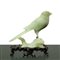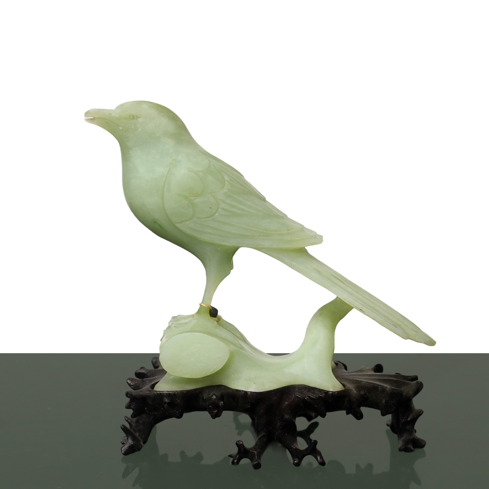 Uccellino in giada verde chiaro H cm 12x13 - con base H cm 14,9 Base in legno ramificata. Timbro W K legato a una zampa.