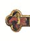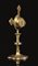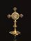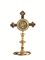 in bronzo dorato e smalti, base esalobata decorata da due formelle quadrilobate a rilievo, fusto con duplice nodo. Al centro placchetta circolare con angelo, alle estremità dei bracci i simboli degli Evangelisti e il Pellicano; sul retro coperchio del reliquiario decorato con busto di Cristo a rilievo, alt. cm 28. Modifiche
