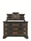 in legno ebanizzato, piano rettangolare, tre cassetti sottostanti decorati a lacunari con motivi vegetali intarsiati, base modanata, piedi a mensola e soprastante scarabattolo a quattro cassetti ed uno sportello su base rettangolare, piedi anteriori a zampa ferina, cm 145x61x135, piccoli danni e restauri
