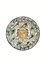 in maiolica decorata in verde, blu, giallo , giallo arancio; al centro del cavetto uno stemma bipartito, sormontato da corona con gracchi accompagnati da lettere “G” e dal motto “SEDES NOSTRE IN ALTITUDINE”; sulla tesa un ricco motivo a girale fogliata intervallata da fiori, diam. cm 41