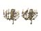 in bronzo dorato a nove bracci modellati a volute vegetali, sostegni parietali a palmetta con elementi a graticola, finale a voluta, alt. cm 64, profondità cm 58, un'appliques con bobeches mancante di un piattello (2)