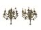 in bronzo dorato a nove bracci modellati a volute vegetali, sostegni parietali a palmetta con elementi a graticola, finale a voluta, alt. cm 64, profondità cm 58 (2)