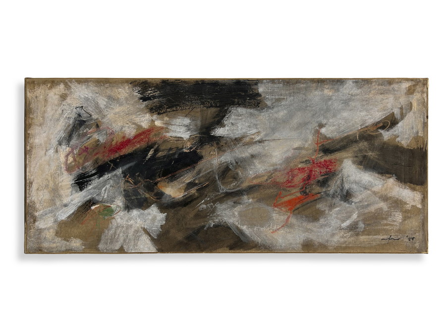 BASALDELLA AFRO (1912 - 1976) SENZA TITOLO. 1958. olio su carta intelata. Cm 76,10 x 33,20. firma e data