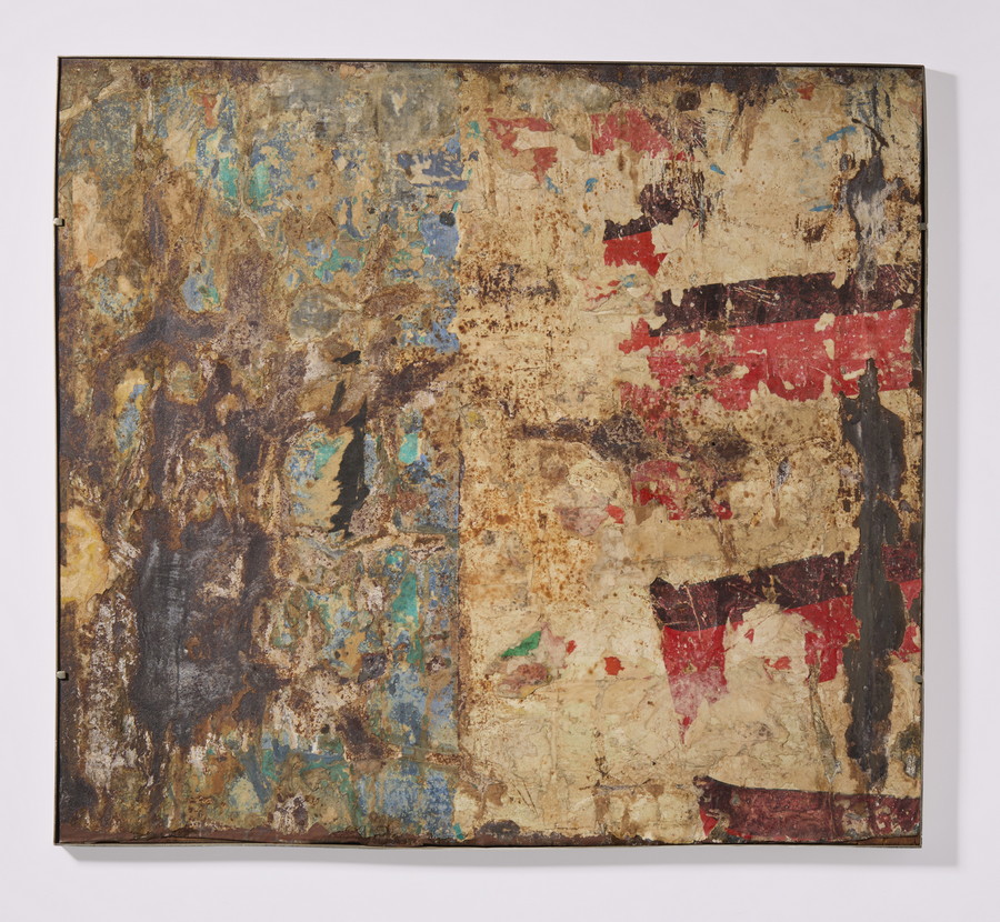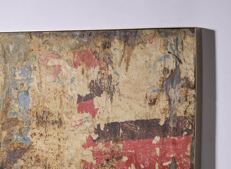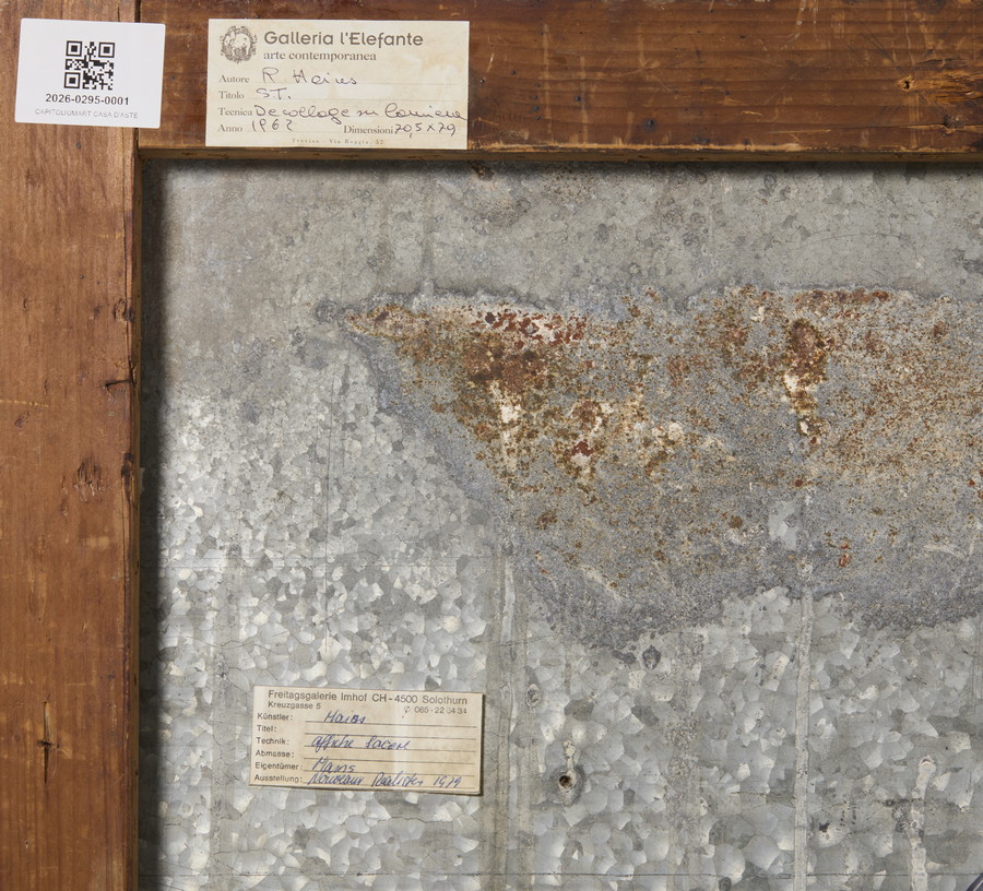 HAINS RAYMOND (1926 - 2005) SENZA TITOLO. 1962. Decollage su lamiera. Cm 79,00 x 70,00. sul retro: firma, data ed etichette Galleria l'Elefante, Treviso e Galleria Freitagsgalerie Imhof, Solothurn