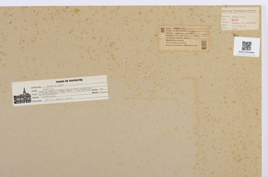 sul retro: etichette della Galleria Thaddaeus Ropac (Salisburgo), del Museo de Arte Contemporaneo Internacional Rufino Tamayo (Città del Messico) e del Museo de Monterrey (Monterrey)