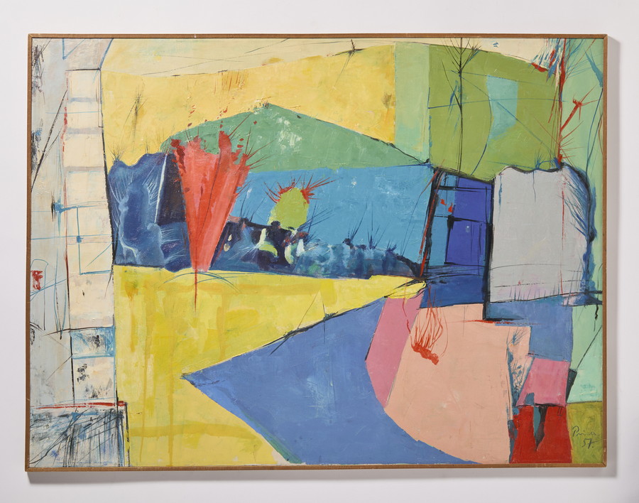 Alla fine degli anni Cinquanta questo orientamento si traduce in un progressivo superamento della figurazione diretta: il dato naturale permane, ma viene subordinato a una crescente centralità della struttura. Il colore si emancipa dalla funzione mimetica per assumere un ruolo costruttivo, generando forma e relazioni nello spazio pittorico.