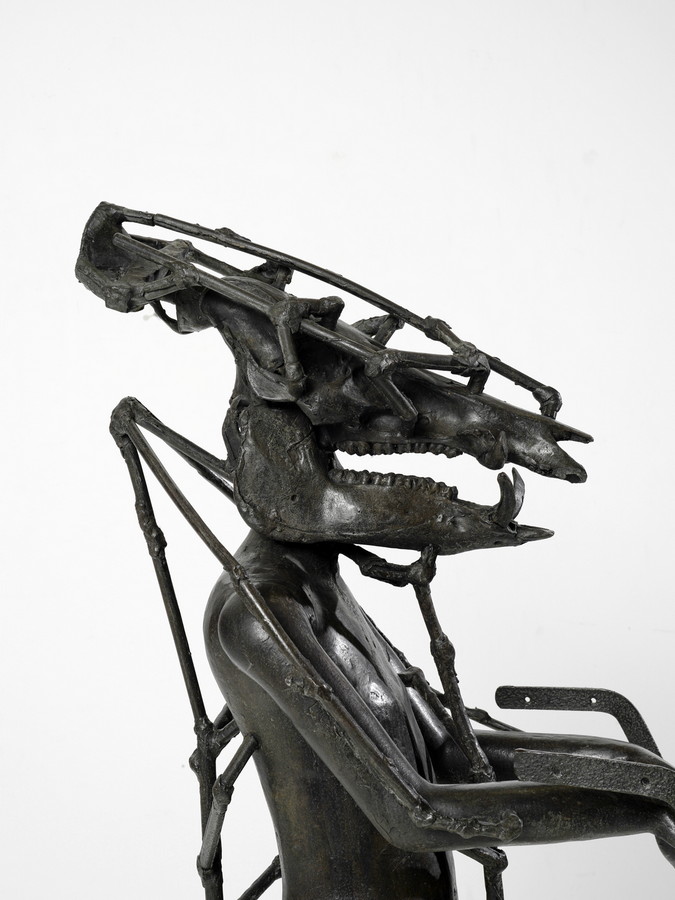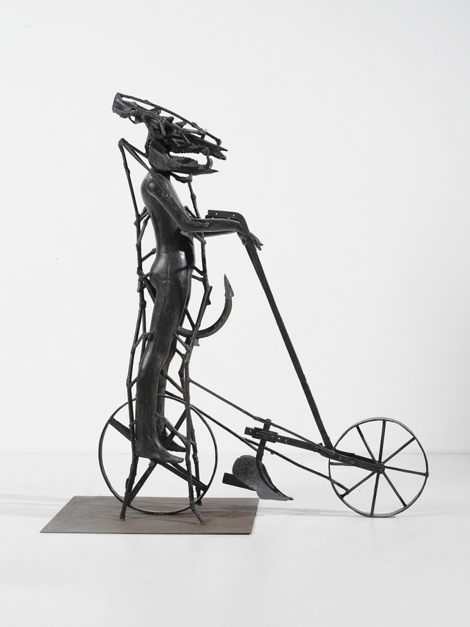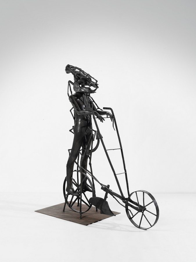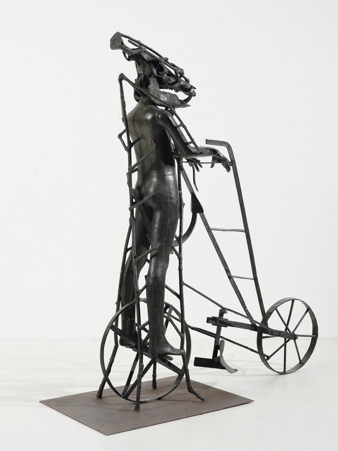 SPOERRI DANIEL (n. 1930) RAGAZZO CINGHIALE CON ARATRO. 2004. Bronzo. Cm 150,00 x 172,00 x 60,00. tiratura es. 5/5