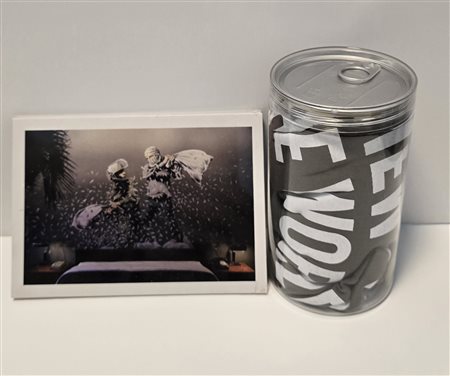 lotto composto da un set di 12 cartoline + una T-shirt , acquistate presso il Walled off Hotel di Betlemme creato dall'artista .