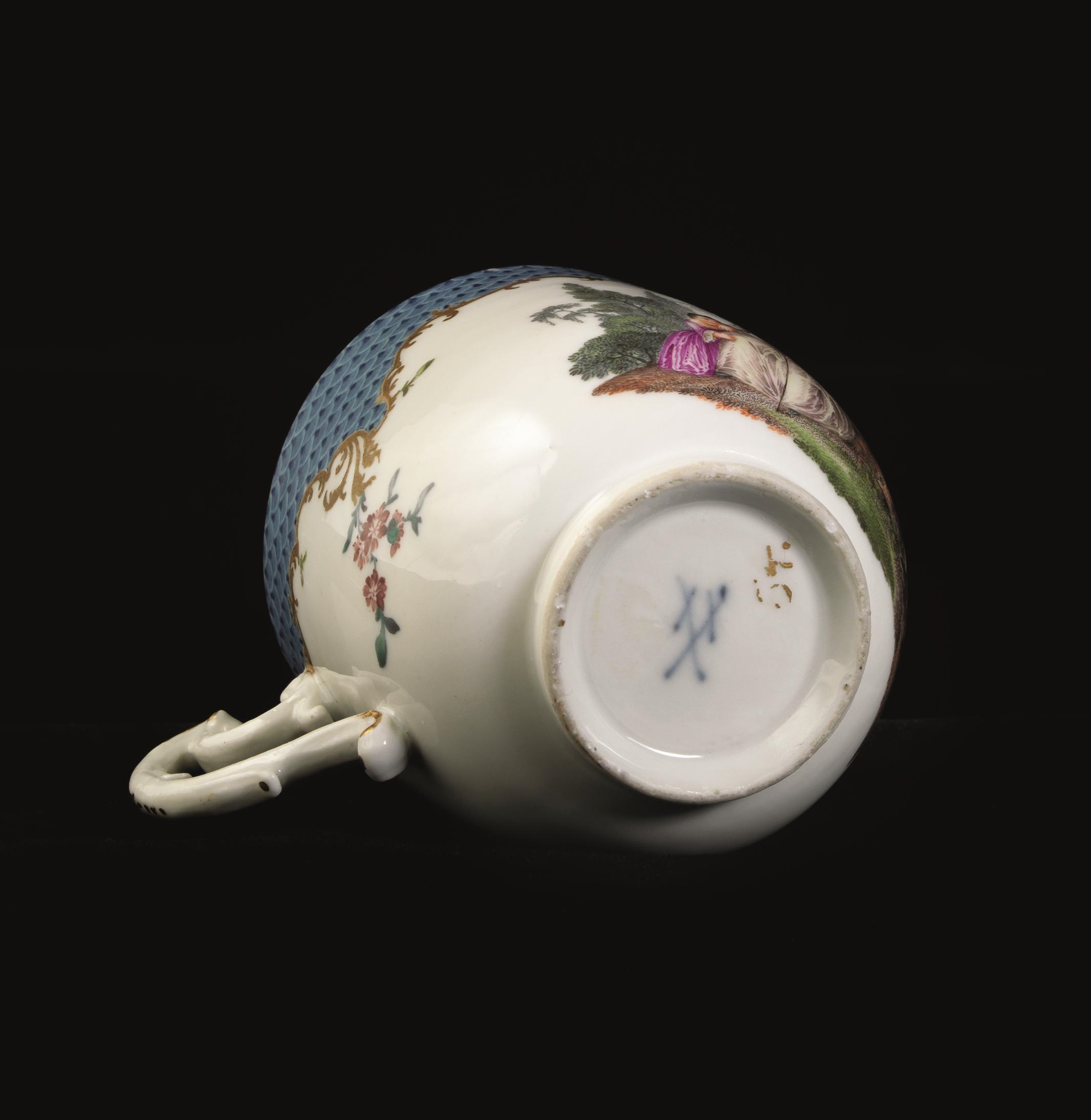 COPPIA DI TAZZINE CON PIATTINO, MANIFATTURA DI MEISSEN, 1750 CIRCAin...