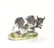 in porcellana dipinta in policromia, raffigurante toro. Marca in blu sul fondo, cm 9x14,5x7. Difetti