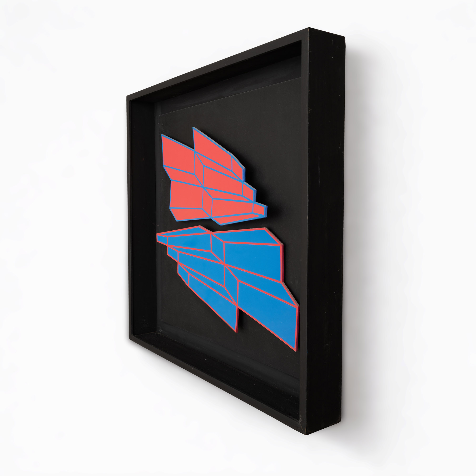 Tecnica mista su 2 tavole sagomate in 3d applicate su legno