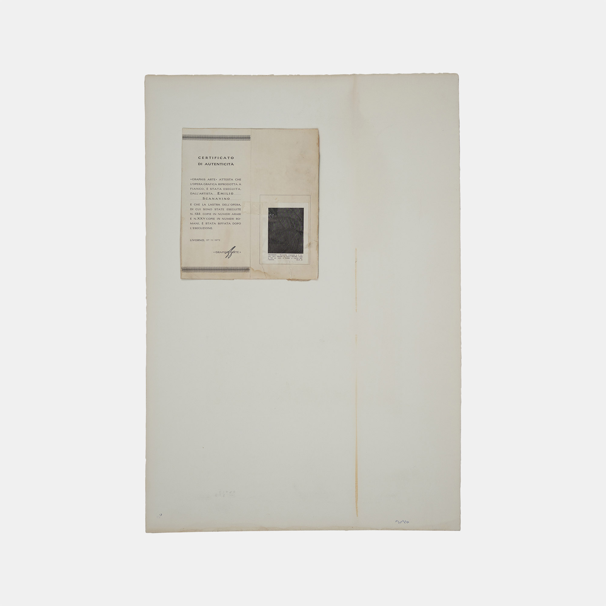Certificato di autenticità di Graphis Arte, Livorno 1972 , sul retro
