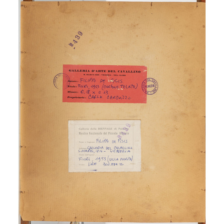 sul retro: etichetta e timbro della Galleria d'Arte del Cavallino Venezia;