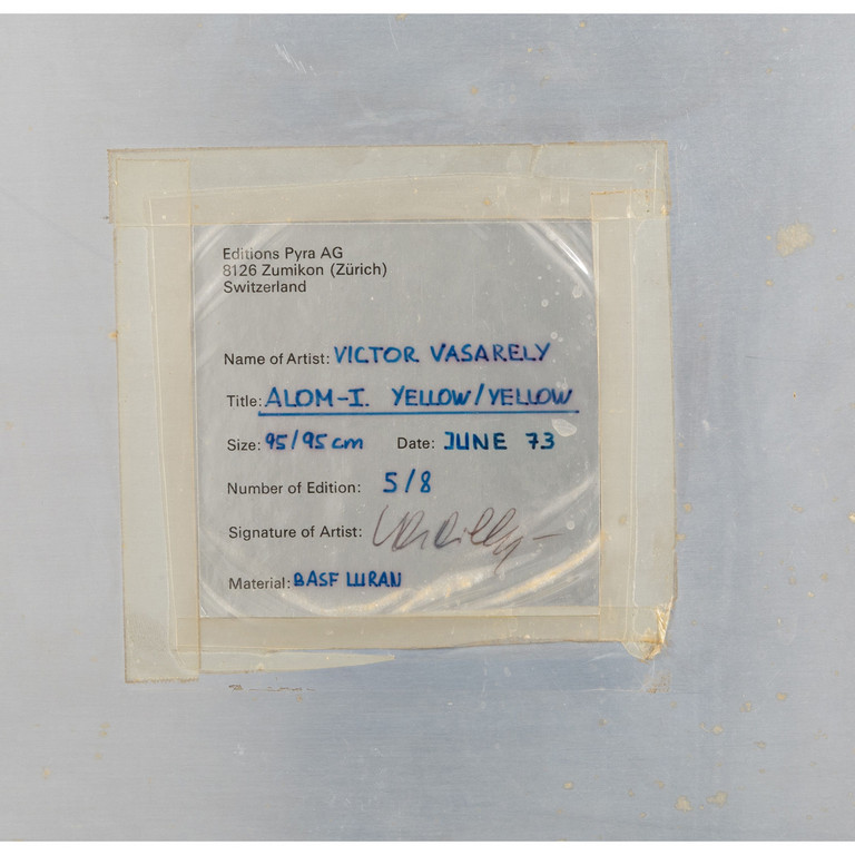 signed on the label on the reverse of Editions Pyra AG Zurich