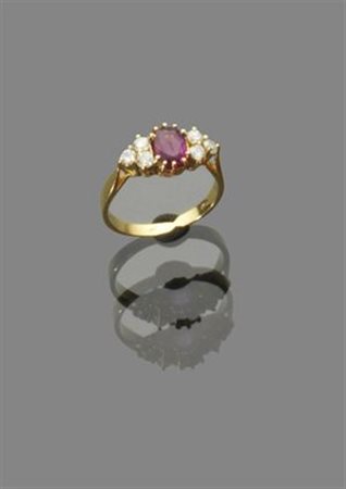 ANELLO Anello in oro giallo con rubino di taglio ovale e diamanti taglio...