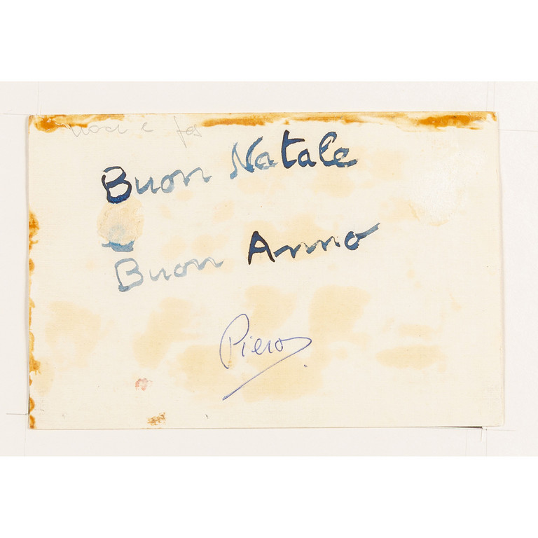 signed and dedicated on the reverse 'Buon Natale/Buon Anno/Piero'