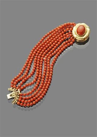 BRACCIALE Bracciale con otto fili di corallo. Fermaglio in oro giallo con...