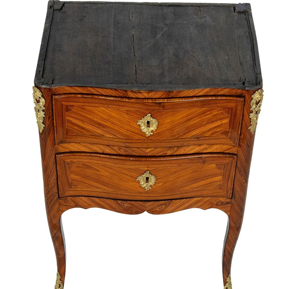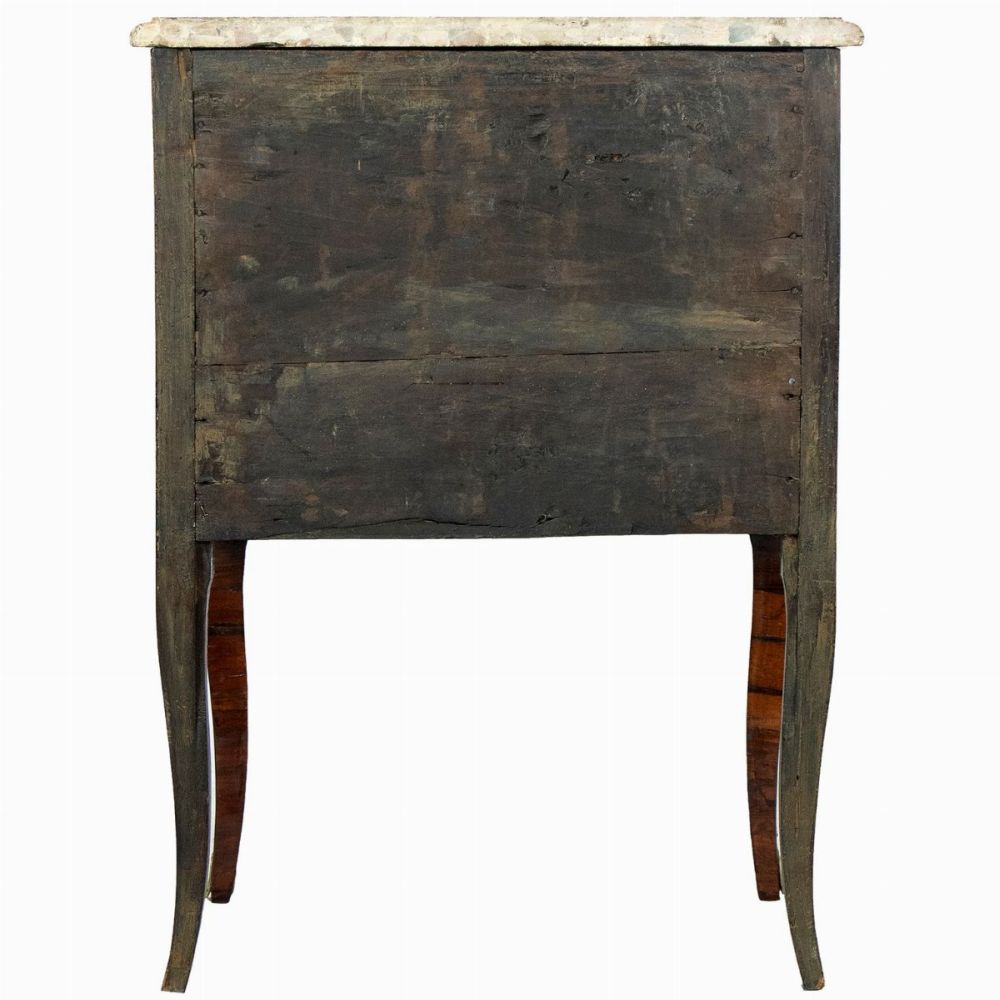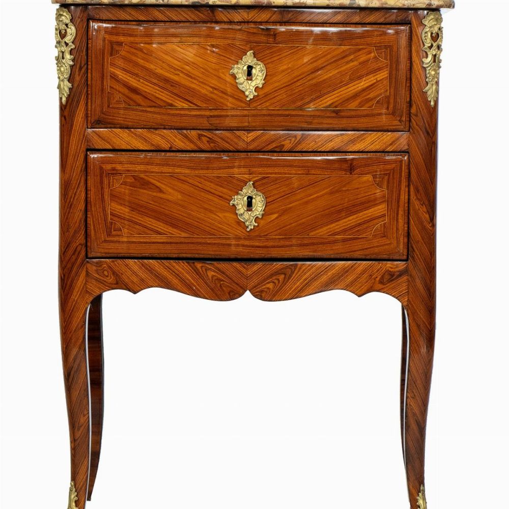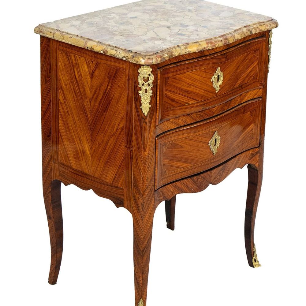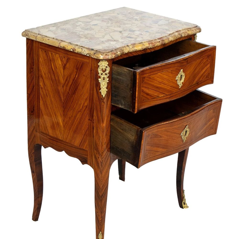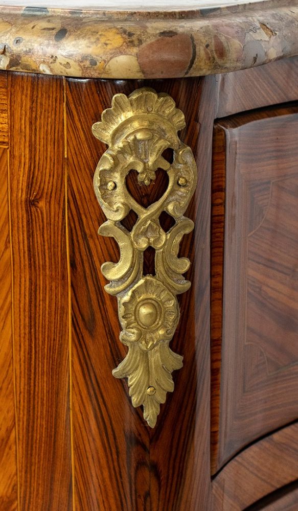 2. piano in marmo “breccia di Aleppo”, due cassetti intarsiati sul fronte del mobile, ornamenti in bronzo dorati.