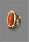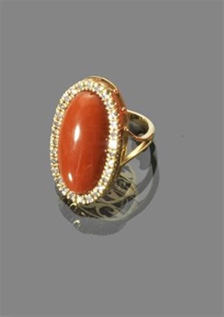 ANELLO Anello in oro giallo con corallo di forma ovale contornato da diamanti...
