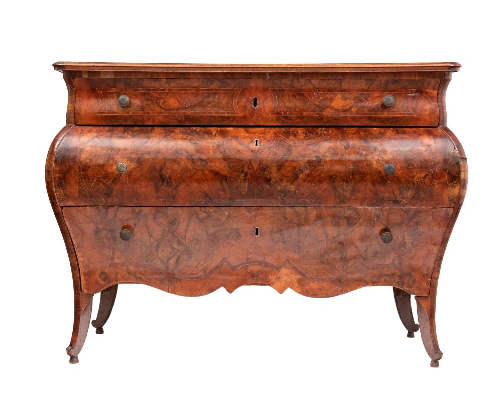 Comò barocchetto in radica di noce - Area lombardo-veneta, XVIII secolo