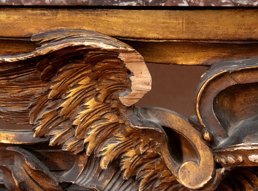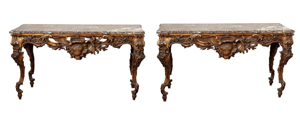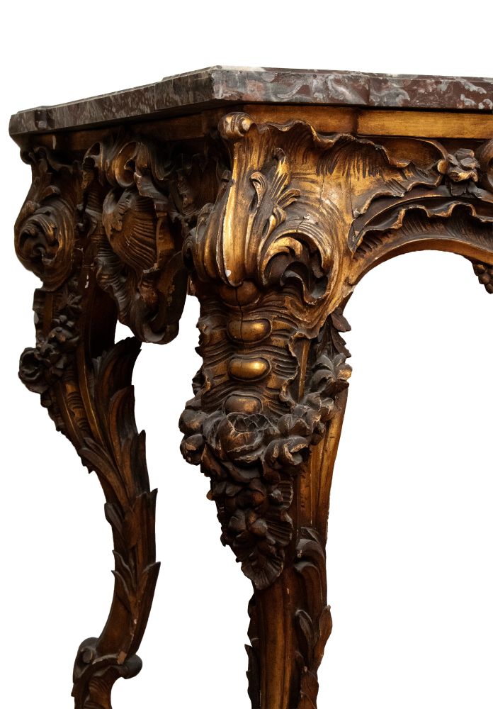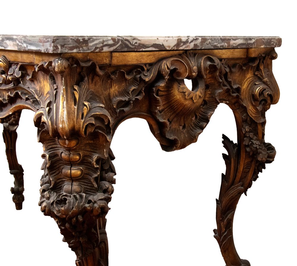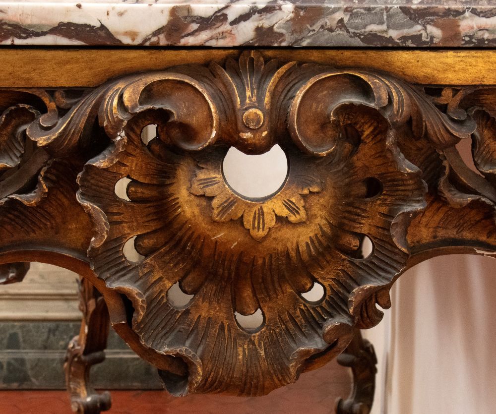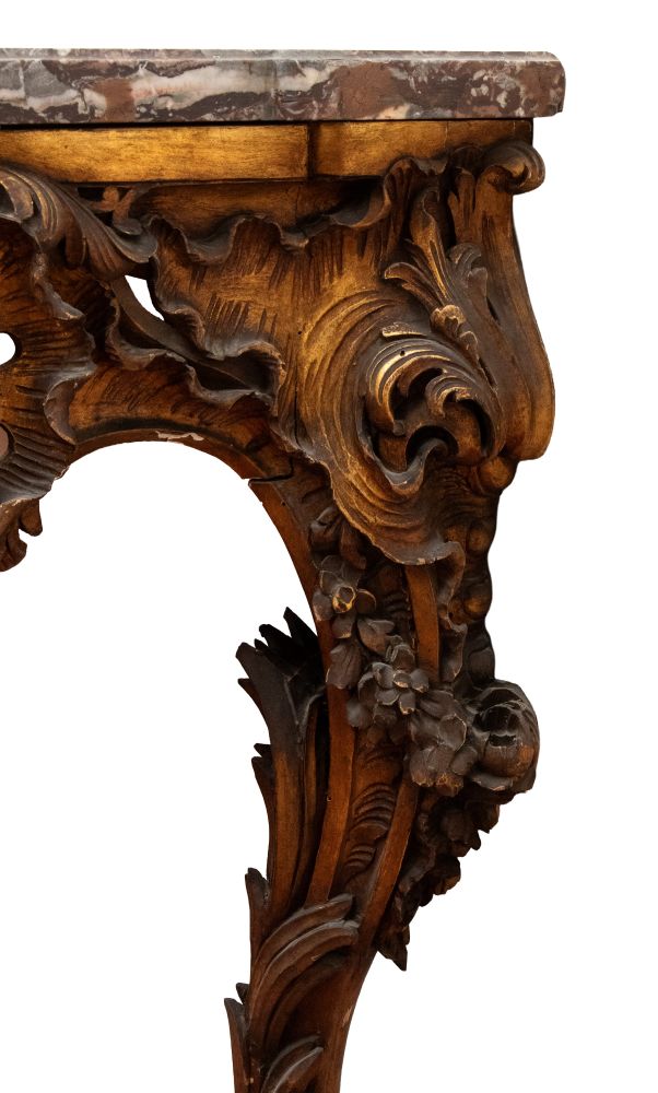 Coppia di consolle in stile Luigi XV in legno intagliato e dorato - Italia centrale, prima metà del XIX secolo