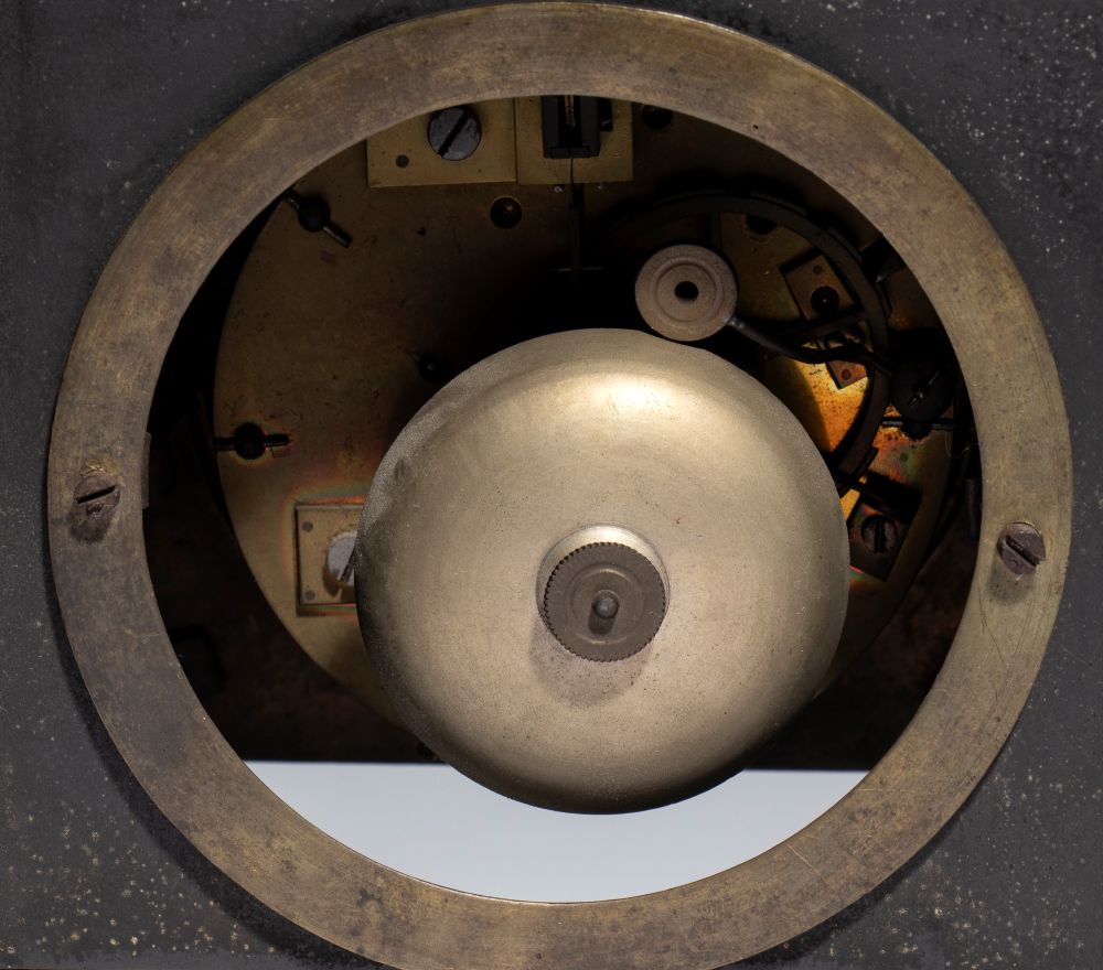 Pendola da tavolo in bronzo dorato e patinato, epoca Restaurazione (Carlo X) - Francia, XIX secolo
