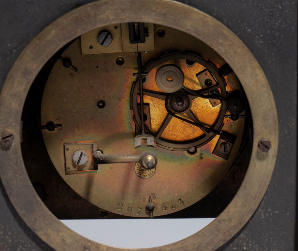 Pendola da tavolo in bronzo dorato e patinato, epoca Restaurazione (Carlo X) Francia, XIX secolo