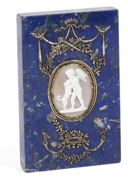 Lot 178 | PLACCA FERMACARTE, SECOLO XIX in lapislazzuli centrata da cammeo ovale con...