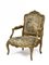 in legno intagliato e dorato, spalliera sagomata, braccioli a giorno su sostegni mossi, gambe sinuose, ricoperta con stoffe francesi con storie di Esopo, difetti
