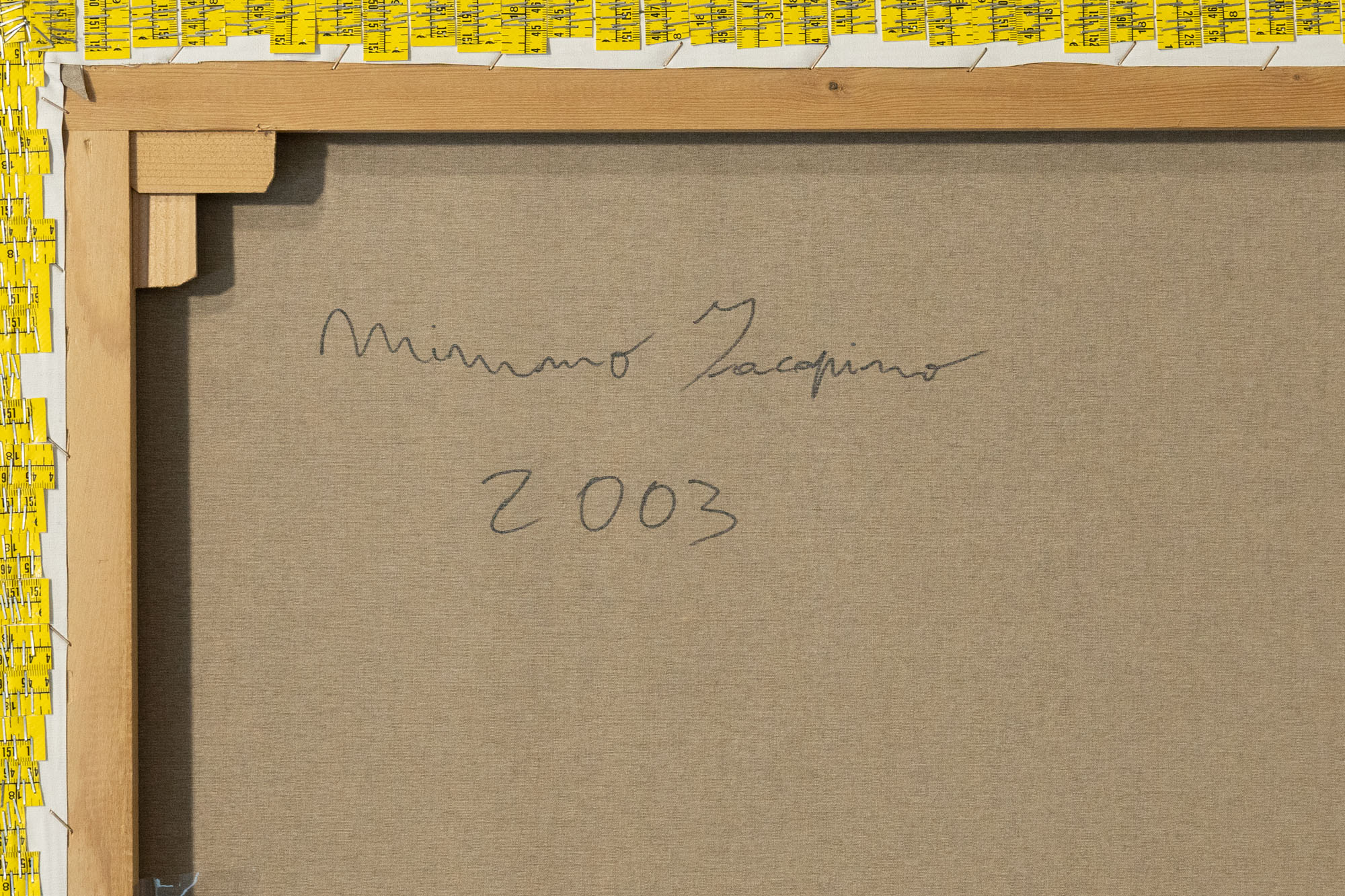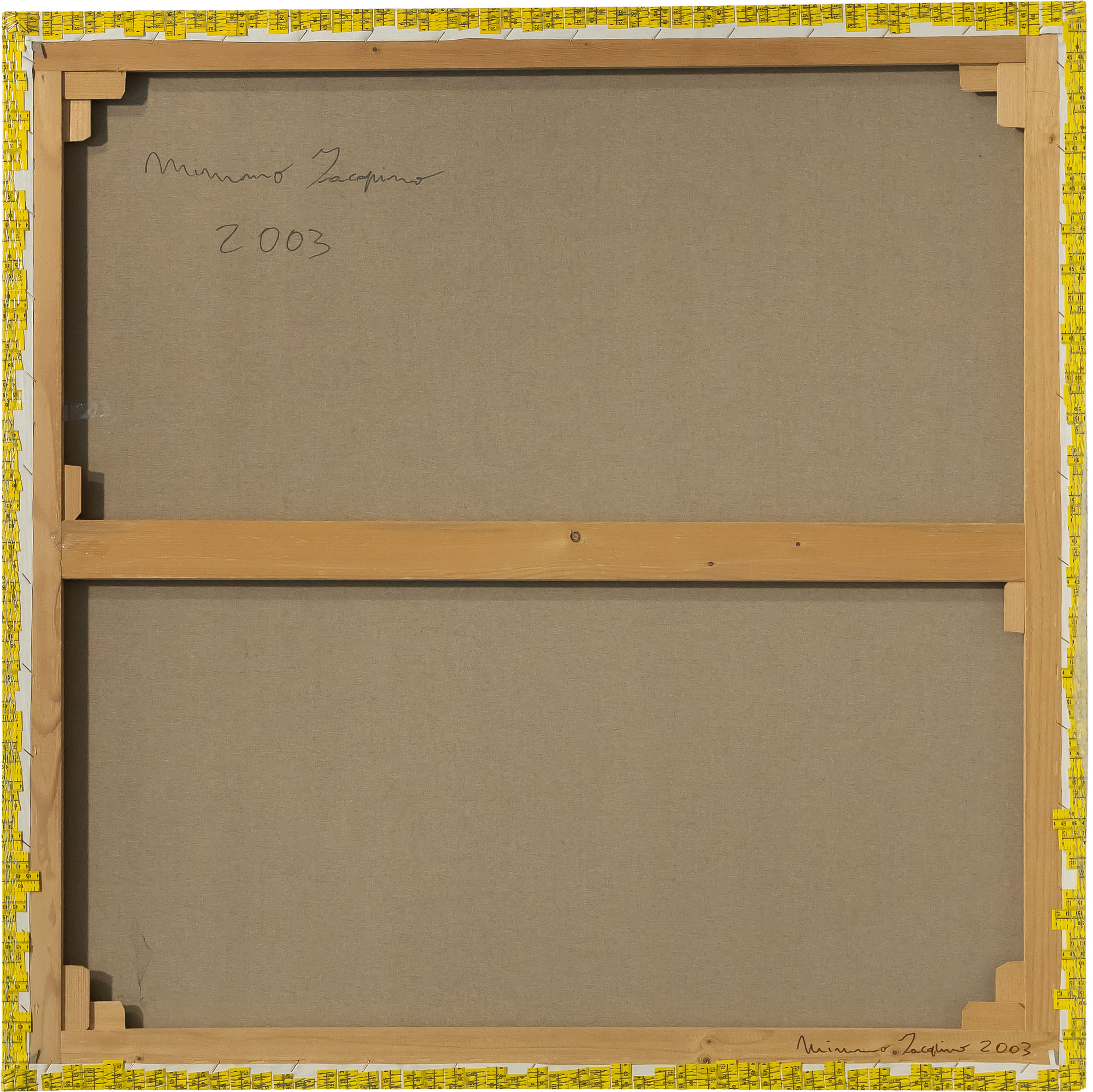 MIMMO IACOPINO(1962)Senza titolo2003Metro per sarti su tela100 x 100 cmFirme e date al retroOpera accompagnata da autentica su fotografia firmata dell'artistaPROVENIENZA:Collezione privataBIBLIOGRAFIA:Hemispheres, febbraio 2003, copertina
