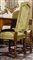 in stile Settecento, in noce, spalliera sagomata, gambe tornite a balaustro riunite da traversa, ricoperti in velluto verde (10)