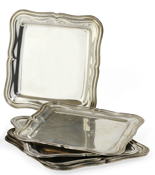 Lot 198 | SEI SOTTOPIATTI, SECOLO XX di forma quadrata sagomata, in argento,...